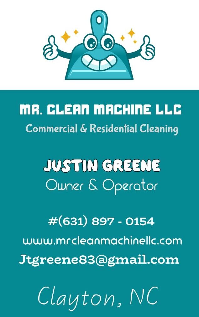 Mr. Clean Machine LLC specializes in providing top-notch cleaning services tailored for both commercial establishments and residences in Clayton, NC and surrounding areas. Cleaning services include deep cleans and quick drop ins.